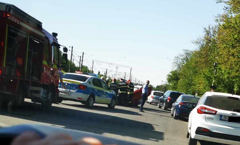 Accident pe strada Constantin Ene. O mașină s-a răsturnat