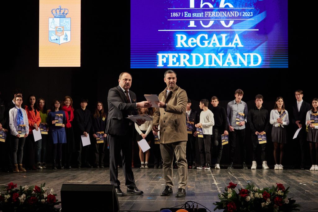 Tema ediției din acest an a fost „Eu sunt Ferdinand”. Înseamnă o comunitate, înseamnă valoare și tradiție, înseamnă provocare, performanță, continuă evoluție, școală și distracție, proiecte și concursuri. ”Să fii Ferdinand înseamnă să fii purtătorul unui blazon, să ai o fărâmă de unicitate, să fii mândru de apartenența la o comunitate cu standarde înalte” a mărturisit cu emoție prof. Gigliola Ceunaș, în rolul de prezentator al ReGalei Ferdinand. Spectacolul performanței și al exprimării artistice a presupus munca în echipă a numeroși profesori și elevi, toți animați atât de sentimentul apartenenței la această comunitate, cât și de dorința de a realiza evenimente de impact pentru toți beneficiarii educației. De la lumini și sunet, la afișe, postere, flyere, invitații, momente artistice (majorete, teatru, folclor, dans, interpretare vocală și instrumentală), organizarea și coordonarea evenimentului (sală, decorațiuni, interviuri, film, fotografii) zeci de profesori inimoși, zeci de elevi și voluntari Alumni, părinți susținători, toți au reușit să se identifice cu povestea unei comunități pe care ne-o dorim mereu mai frumoasă, mereu mai puternică. „Pentru că ce este Ferdinand? Explozie de energie, entuziasm și inocență.” Acestea sunt cuvintele prin care descrie seara de 13 decembrie, seara Ferdinand, prof. Cristina Frânculescu, membră a echipei de organizare a evenimentului. Ineditul spectacolului l-au reprezentat cele 4 interviuri oferite de membri ai comunității Ferdinand din trecut -prezent-viitor: elev ciclul primar, elev liceu, părinte – absolvent al acestui liceu și, mai ales, pedagogul Colegiului, dl. Lupu Remus, absolvent, de asemenea al școlii noastre. Viața acestuia din urmă se identifică cu viața școlii, ca o monografie deschisă pentru generațiile viitoare pentru că ”el este Ferdinand” de 57 de ani, întâi ca elev și apoi ca angajat. „Valorile sunt oferite de tinerii care m-au provocat mereu să lucrez cu ei. S-a realizat pentru prima dată, în România, o hartă verde, recunoscută mondial de Green Map, cu elevii din internat și, în continuare lucrăm la amenajarea Parcului Ferdinand” a declarat domnul Remus, cu multă emoție în glas și în priviri.