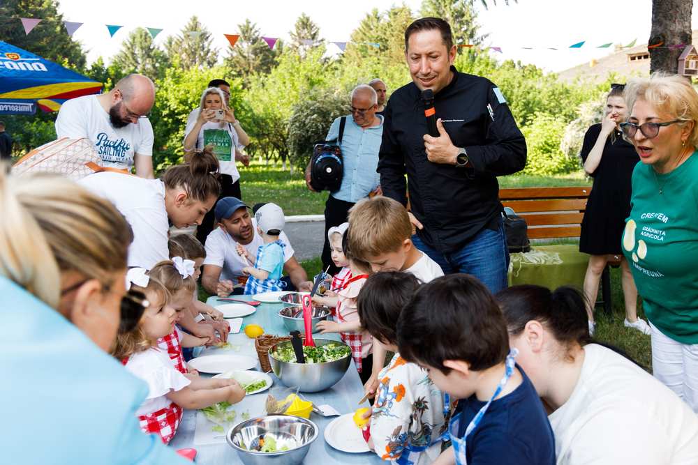 Programul dedicat de Asociația AGRICOLA învățării și adoptării unui stil de viață sănătos a continuat și după-amiaza următoare, 26 mai, în livada din curtea Grădiniței AGRICOLA, unde peste 100 de copii preșcolari însoțiți de părinții lor, cadre didactice ale grădiniței și reprezentanți ISJ Bacău au sărbătorit Ziua Grădiniței Agricola gătind împreună salate din legume sănătoase și carne de pui cu creștere lentă sub îndrumarea prețioasă a renumitului Chef Cezar Munteanu.