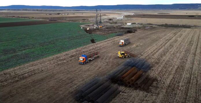 Filmare aeriană în zona viitorului pasaj peste DN 2 și CF 500, în dreptul localității Domnești-Târg, Vrancea.