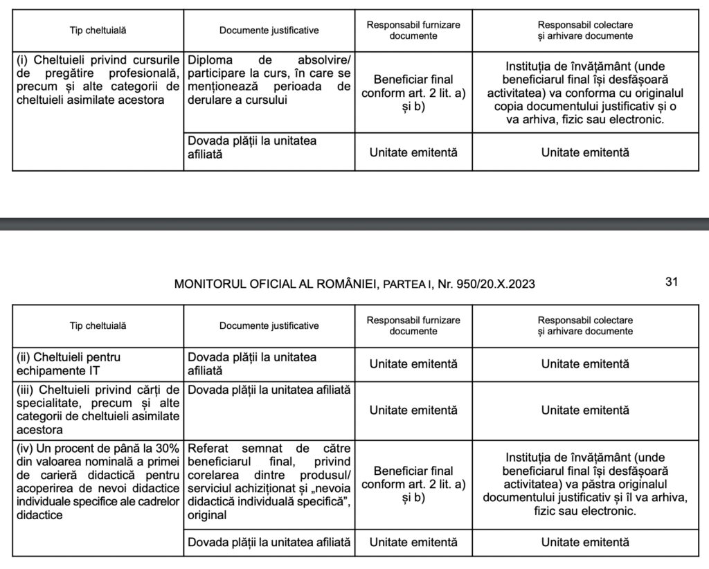 *Acestea sunt cheltuieli lunare și reprezintă per sportiv suma de minim 100 RON/lunar.