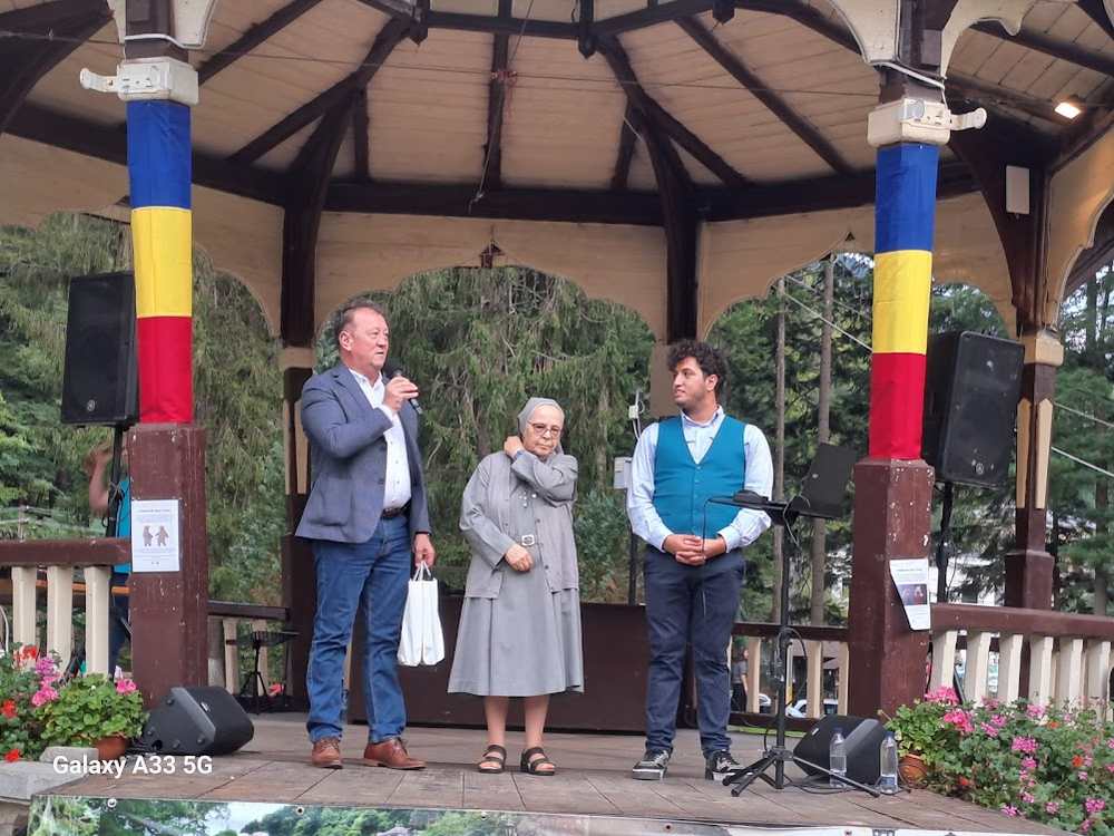 ,,Vă mulțumesc pentru primirea pe care ne-ați făcut-o, îi mulțumesc domnului primar, Gheorghe Baciu, pentru că ne este alături și că a înțeles misiunea și mesajul nostru, cele care suntem zi și noapte în slujba acestor minunați copii, printre care s-au aflat atât Iustin, un mare artist în devenire, cât și Augustin, spre mândria și împlinirea noastră”, a spus sora Michela.
