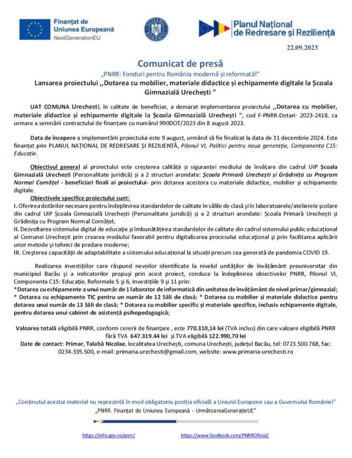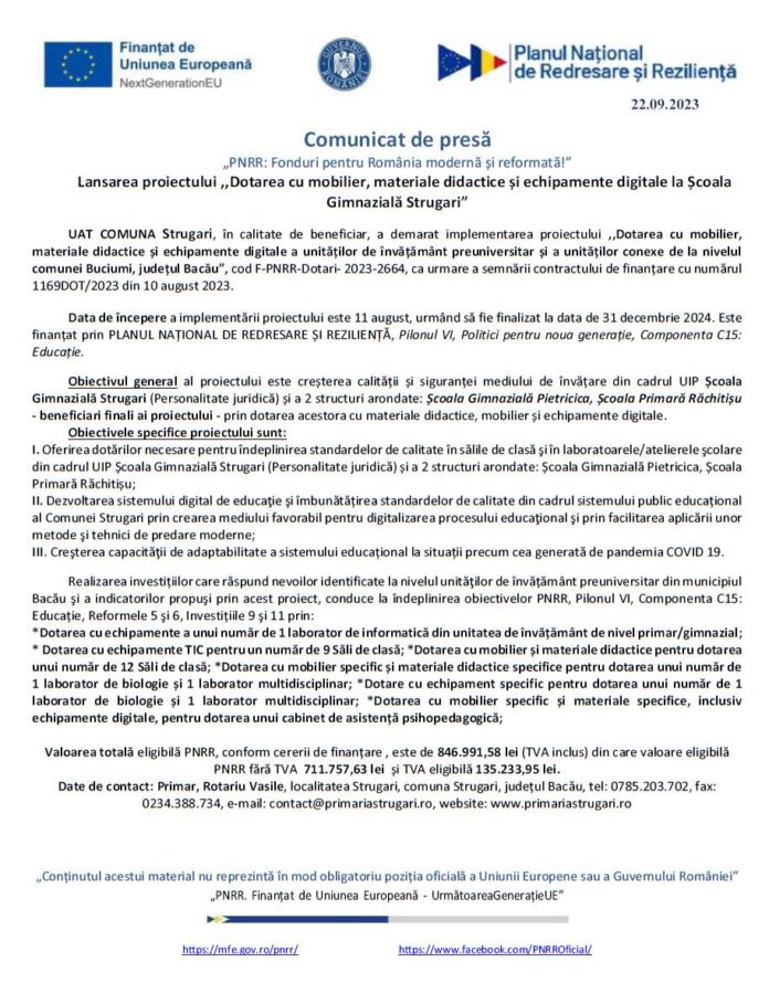 Informații suplimentare la tel: 0745.575.744 (Mihai); 0722.648.212 (Dan).