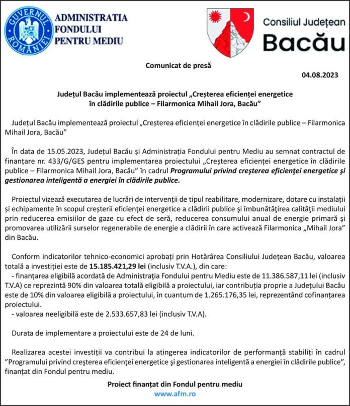 Primăria Moinești implementează două proiecte majore în valoare de aproximativ 18 milioane de euro, care vor aduce beneficii semnificative comunității. Pe lângă lucrările deja efectuate, la pistele de biciclete, primăria s-a angajat să amenajeze 8 stații de bike-sharing și să cumpere 120 de biciclete.