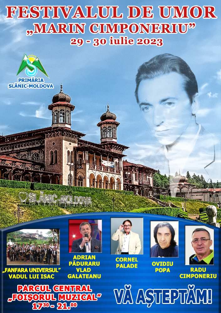 Acordurile Fanfarei ,,Universul” din Vadul lui Isac (Republica Moldova) vor da startul ediției a treia a Festivalului de umor ,,Marin Cimponeriu”, care va avea loc în acest weekend (29 – 30 iulie), în Foișorul de Muzică din Parcul Central al stațiunii Slănic-Moldova, cu începere de la ora 17.30.