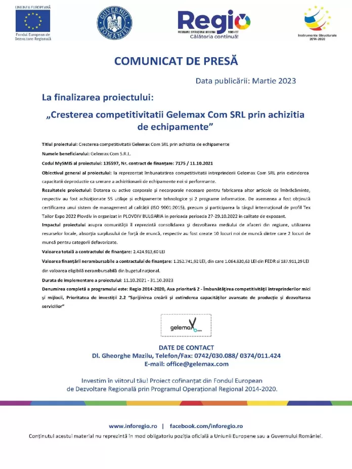 vederea finanţării proiectului ,,Furnizare de echipamente medicale, instalare, punere în funcţiune, instruire personal şi