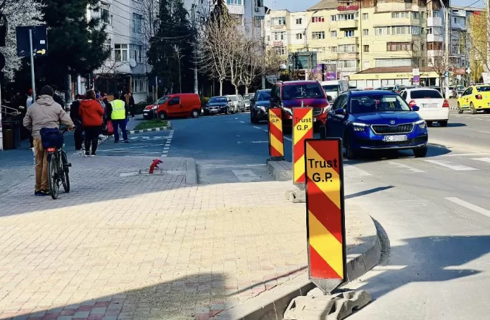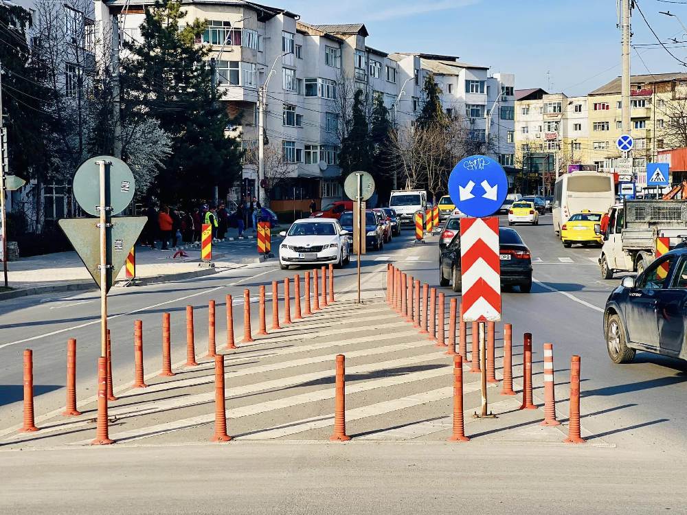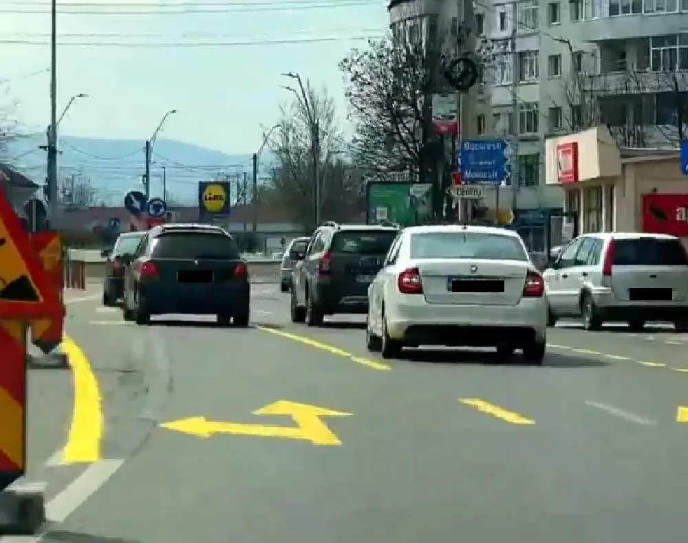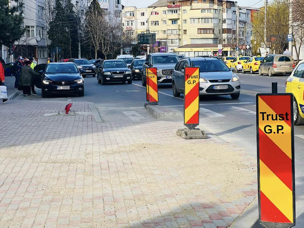 Primăria a retrasat benzile de circulație pe strada Mioriței, în apropierea sensului giratoriu de la Podul Mărgineni, după ce, din cauza construcției unui scuar chiar pe prima bandă, curculația a fost ștrangulată.