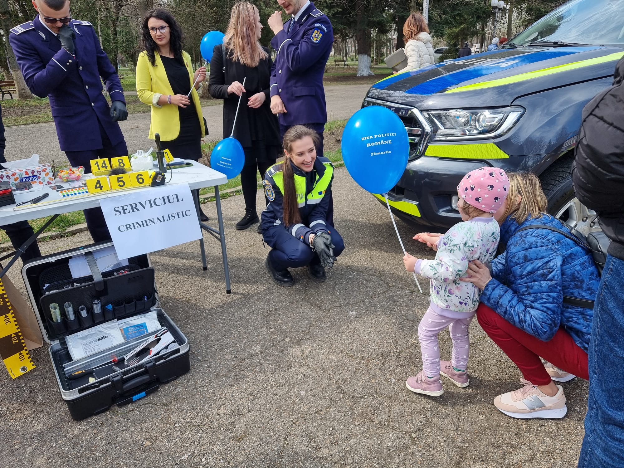 Astăzi, polițiștii de la IPJ Bacău au primit cu brațele deschise zeci de copii veniți în Parcul Cancicov din Bacău, pentru a sărbători împreună cei peste două secole de existență instituțională a Poliției Române. Activitățile organizate au inclus o miniexpoziție cu Laboratorul Criminalistic mobil, Laboratorul de Siguranță Rutieră, echipamentul de protecție și armamentul folosite în activitățile polițienești, precum și tehnica și dotarea polițiștilor din cadrul Serviciului pentru Acțiuni Speciale și a Biroului pentru Protecția Animalelor.