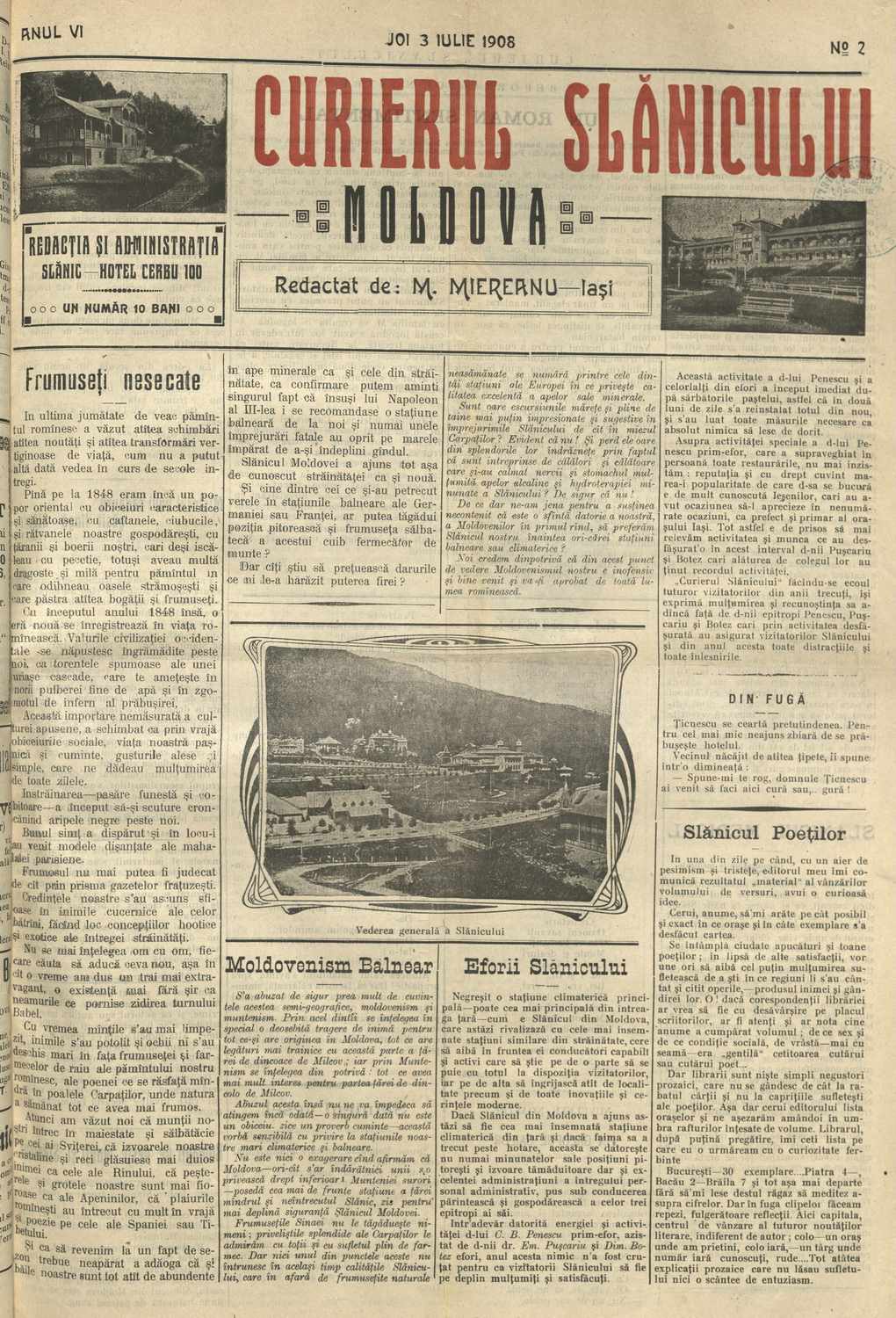 În acest episod: ,,Curierul Slănicului Moldovei”, Nr. 2, Anul VI, Joi, 3 iulie 1908.