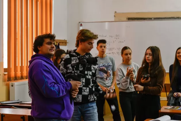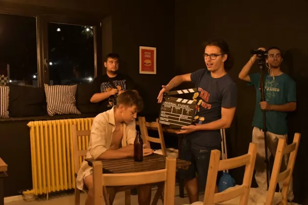 „Am avut și peripeții în timp ce filmam pentru acest proiect. Eram în Gara Bacău unde trebuia să facem o scenă în care Răzvan, actorul principal al filmului, aleargă după tren. După vreo 45 de minute de așteptare apare un tren și toți am început să alergăm după Răzvan: cameramanul, eu, regizorul, fotograful de platou și sunetistul. Nu mi-a plăcut cum ai ieșit și am zis că mai filmăm odată scena și a trebuit să așteptăm un tren următor. A venit al doilea tren, am filmat, a fost ok. Atunci a venit domnul de pe peron și ne-a întrebat ce facem și ne-a spus că era să oprească de două ori trenul pentru noi. El a crezul că pierdem trenul și când i-am povestit că noi filmăm pentru un lungmetraj s-a cam supărat”, ne-a povestit Matei Elesei care ne-a prezentat și o parte din cei aproape 25 dintre colegii săi cu care lucrează în film: Theodor Vieru, Amalia Auraș, Mirabela Porondi, Alia Popa. Mirabela deține un rol principal în film și o interpretează pe Tania. „Eu joc un rol principal, o tânără care se îndrăgostește – povestește Mirabela. De cand am intrat în echipă am avut ocazia să întâlnesc actori, am fost la festivaluri, am fost premiată și chiar m-am gândit să mă orientez în viitor pe acest domeniu. E frumos să știi că faci parte dintr-o echipă care îți deschide foarte multe uși. La vârsta mea să am premii naționale și internaționale…eu zic că e ceva.” De altfel, filmele tinerilor de la Overthink au câștigat multe premii. Premii importante.