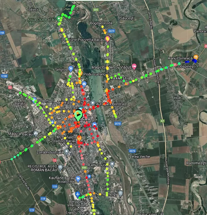 Măsurătorile au fost efectuate de colegul geograf Bogdan Pădurariu, înainte de răsăritul Soarelui (ora de plecare pe traseu: 5,25), în cadrul proiectului UCLAR (Urban Climate Assessment: a pre-requisite in designing cities’ resilience response to climate change for Romania’s North-East Development Region), coordonat de prof. univ. Lucian Sfîcă (Facultatea de Geografie şi Geologie din cadrul Universităţii „Alexandru Ioan Cuza” din Iaşi).