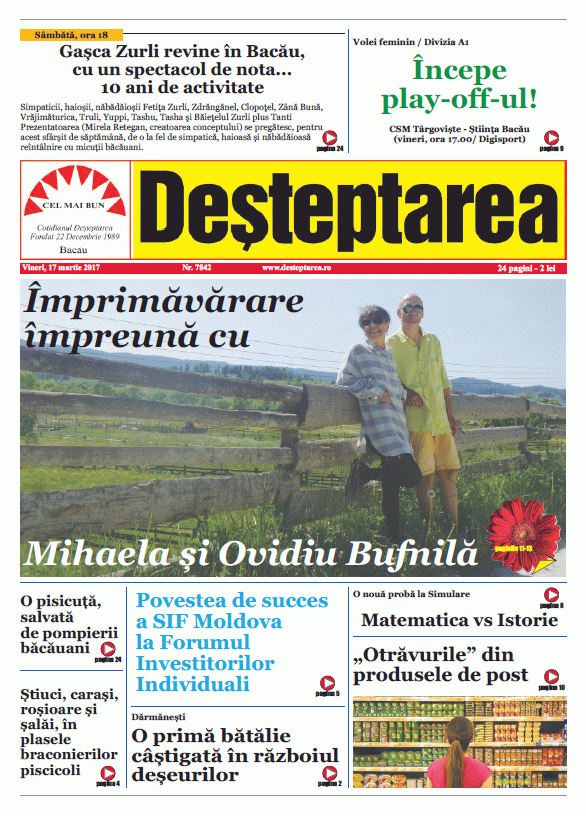 Pagina 1 – 17 martie 2017 Deșteptarea 17 martie 2017 Acțiune FacebookTwitterWhatsAppTelegramVK Acțiune FacebookTwitterWhatsAppTelegramVK Guvernul limitează cantitățile de alcool și tutun pentru uz personal: maximum 10 litri de băuturi spirtoase Scos din trafic de polițiștii rutieri și introdus în arest Exercițiu de evacuare și prim ajutor la Spitalul Județean de Urgență Bacău, simulând un cutremur în zona Vrancea Spitalul „Prof. Dr. Eduard Apetrei” Buhuși deschide dialogul cu pacienții, într-o întâlnire programată pe 23 decembrie Două dintre cele mai valoroase companii din România sunt din Bacău, conform Ziarului Financiar Bacău: Universitatea „Vasile Alecsandri” a organizat serbarea de Crăciun Dublă lansare de carte la Centrul de Cultură „George Apostu”, cu Carmen Mihalache și Dan Perșa Creștere a infecțiilor respiratorii în județul Bacău. Opt cazuri noi de gripă în ultima săptămână Pesta porcină africană confirmată la Itești Pompierii au verificat adăposturile antiaeriene. Doar 6% din populația județului încape în ele Burnout-ul de sărbători. De ce nu ne simțim mai bine după vacanță, ci mai obosiți „Genealogii imaginare”. Expoziție de sculptură Marian Petre