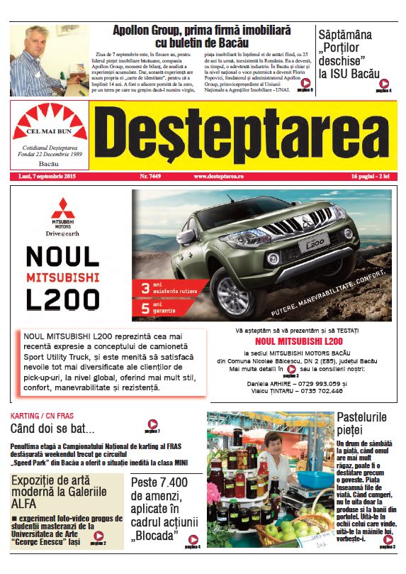 Pagina 1 Deșteptarea 6 septembrie 2015 Acțiune FacebookTwitterWhatsAppTelegramVK Acțiune FacebookTwitterWhatsAppTelegramVK Tânăr de 21 de ani, reținut după ce a condus fără permis și a folosit plăcuțe de înmatriculare false Hramul Sfintei Varvara și sinaxa preoților din Protopopiatul Onești, celebrate la 240 de metri adâncime în Salina Târgu Ocna Șezătoarea de la Măgura, o punte între generații și tradiții Percheziții și 12 autovehicule puse sub sechestru într-un dosar de evaziune fiscală de 150.000 de lei Jandarmii băcăuani au oferit daruri de Moș Nicolae unor copii din Stănișesti Gala Ecosistemului Antreprenorial al Universității «Vasile Alecsandri» Un mister din 1973… în Steagul roșu Fotbalul băcăuan la 360 de grade Depopularea continuă dar septembrie aduce o surpriză demografică Cum să ai grijă corect de parfumul tău Handbal juvenil: Prima ediție a Memorialului „Marcel Păunică” Polițiștii băcăuani, în sprijinul comunității: recomandări pentru sărbători în siguranță