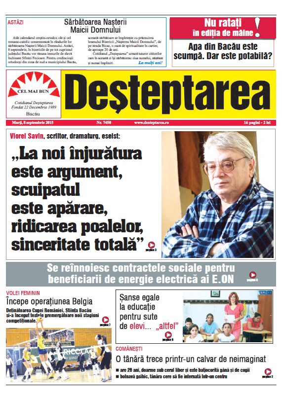 Pagina 1 Deșteptarea 7 septembrie 2015 Acțiune FacebookTwitterWhatsAppTelegramVK Acțiune FacebookTwitterWhatsAppTelegramVK Tânăr de 21 de ani, reținut după ce a condus fără permis și a folosit plăcuțe de înmatriculare false Hramul Sfintei Varvara și sinaxa preoților din Protopopiatul Onești, celebrate la 240 de metri adâncime în Salina Târgu Ocna Șezătoarea de la Măgura, o punte între generații și tradiții Percheziții și 12 autovehicule puse sub sechestru într-un dosar de evaziune fiscală de 150.000 de lei Jandarmii băcăuani au oferit daruri de Moș Nicolae unor copii din Stănișesti Gala Ecosistemului Antreprenorial al Universității «Vasile Alecsandri» Un mister din 1973… în Steagul roșu Fotbalul băcăuan la 360 de grade Depopularea continuă dar septembrie aduce o surpriză demografică Cum să ai grijă corect de parfumul tău Handbal juvenil: Prima ediție a Memorialului „Marcel Păunică” Polițiștii băcăuani, în sprijinul comunității: recomandări pentru sărbători în siguranță