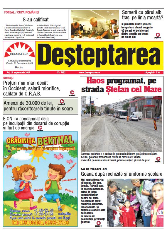 Pagina 1 Deșteptarea 9 septembrie 2015 Acțiune FacebookTwitterWhatsAppTelegramVK Acțiune FacebookTwitterWhatsAppTelegramVK Hramul Sfintei Varvara și sinaxa preoților din Protopopiatul Onești, celebrate la 240 de metri adâncime în Salina Târgu Ocna Șezătoarea de la Măgura, o punte între generații și tradiții Percheziții și 12 autovehicule puse sub sechestru într-un dosar de evaziune fiscală de 150.000 de lei Jandarmii băcăuani au oferit daruri de Moș Nicolae unor copii din Stănișesti Gala Ecosistemului Antreprenorial al Universității «Vasile Alecsandri» Un mister din 1973… în Steagul roșu Fotbalul băcăuan la 360 de grade Depopularea continuă dar septembrie aduce o surpriză demografică Cum să ai grijă corect de parfumul tău Handbal juvenil: Prima ediție a Memorialului „Marcel Păunică” Polițiștii băcăuani, în sprijinul comunității: recomandări pentru sărbători în siguranță Intervenție laparoscopică reușită pentru tratarea infertilității cauzate de varicocel
