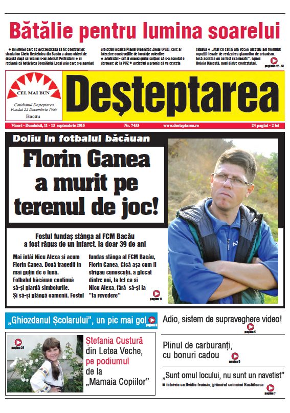 Pagina 1 Deșteptarea 10 septembrie 2015 Acțiune FacebookTwitterWhatsAppTelegramVK Acțiune FacebookTwitterWhatsAppTelegramVK Hramul Sfintei Varvara și sinaxa preoților din Protopopiatul Onești, celebrate la 240 de metri adâncime în Salina Târgu Ocna Șezătoarea de la Măgura, o punte între generații și tradiții Percheziții și 12 autovehicule puse sub sechestru într-un dosar de evaziune fiscală de 150.000 de lei Jandarmii băcăuani au oferit daruri de Moș Nicolae unor copii din Stănișesti Gala Ecosistemului Antreprenorial al Universității «Vasile Alecsandri» Un mister din 1973… în Steagul roșu Fotbalul băcăuan la 360 de grade Depopularea continuă dar septembrie aduce o surpriză demografică Cum să ai grijă corect de parfumul tău Handbal juvenil: Prima ediție a Memorialului „Marcel Păunică” Polițiștii băcăuani, în sprijinul comunității: recomandări pentru sărbători în siguranță Intervenție laparoscopică reușită pentru tratarea infertilității cauzate de varicocel