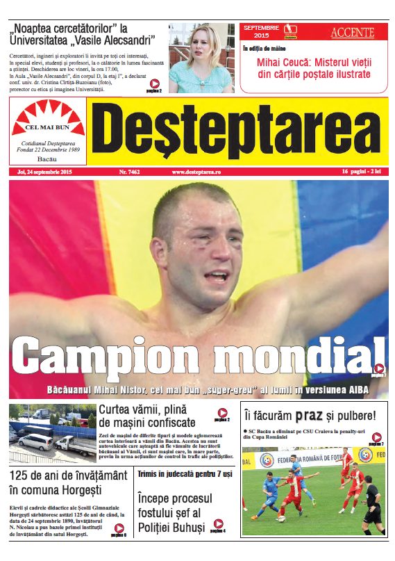 Pagina 1 Deșteptarea 23 septembrie 2015 Acțiune FacebookTwitterWhatsAppTelegramVK Acțiune FacebookTwitterWhatsAppTelegramVK Hramul Sfintei Varvara și sinaxa preoților din Protopopiatul Onești, celebrate la 240 de metri adâncime în Salina Târgu Ocna Șezătoarea de la Măgura, o punte între generații și tradiții Percheziții și 12 autovehicule puse sub sechestru într-un dosar de evaziune fiscală de 150.000 de lei Jandarmii băcăuani au oferit daruri de Moș Nicolae unor copii din Stănișesti Gala Ecosistemului Antreprenorial al Universității «Vasile Alecsandri» Un mister din 1973… în Steagul roșu Fotbalul băcăuan la 360 de grade Depopularea continuă dar septembrie aduce o surpriză demografică Cum să ai grijă corect de parfumul tău Handbal juvenil: Prima ediție a Memorialului „Marcel Păunică” Polițiștii băcăuani, în sprijinul comunității: recomandări pentru sărbători în siguranță Intervenție laparoscopică reușită pentru tratarea infertilității cauzate de varicocel