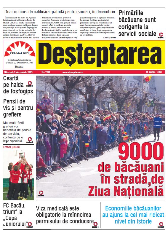 Pagina 1 Deșteptarea 1 decembrie 2015 Acțiune FacebookTwitterWhatsAppTelegramVK Acțiune FacebookTwitterWhatsAppTelegramVK Hramul Sfintei Varvara și sinaxa preoților din Protopopiatul Onești, celebrate la 240 de metri adâncime în Salina Târgu Ocna Șezătoarea de la Măgura, o punte între generații și tradiții Percheziții și 12 autovehicule puse sub sechestru într-un dosar de evaziune fiscală de 150.000 de lei Jandarmii băcăuani au oferit daruri de Moș Nicolae unor copii din Stănișesti Gala Ecosistemului Antreprenorial al Universității «Vasile Alecsandri» Un mister din 1973… în Steagul roșu Fotbalul băcăuan la 360 de grade Depopularea continuă dar septembrie aduce o surpriză demografică Cum să ai grijă corect de parfumul tău Handbal juvenil: Prima ediție a Memorialului „Marcel Păunică” Polițiștii băcăuani, în sprijinul comunității: recomandări pentru sărbători în siguranță Intervenție laparoscopică reușită pentru tratarea infertilității cauzate de varicocel