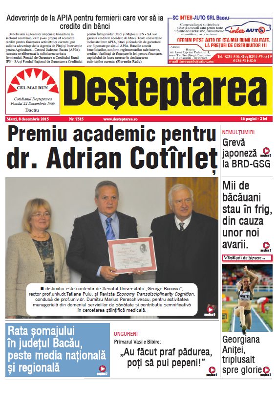 Pagina 1 Deșteptarea 7 decembrie 2015 Acțiune FacebookTwitterWhatsAppTelegramVK Acțiune FacebookTwitterWhatsAppTelegramVK Hramul Sfintei Varvara și sinaxa preoților din Protopopiatul Onești, celebrate la 240 de metri adâncime în Salina Târgu Ocna Șezătoarea de la Măgura, o punte între generații și tradiții Percheziții și 12 autovehicule puse sub sechestru într-un dosar de evaziune fiscală de 150.000 de lei Jandarmii băcăuani au oferit daruri de Moș Nicolae unor copii din Stănișesti Gala Ecosistemului Antreprenorial al Universității «Vasile Alecsandri» Un mister din 1973… în Steagul roșu Fotbalul băcăuan la 360 de grade Depopularea continuă dar septembrie aduce o surpriză demografică Cum să ai grijă corect de parfumul tău Handbal juvenil: Prima ediție a Memorialului „Marcel Păunică” Polițiștii băcăuani, în sprijinul comunității: recomandări pentru sărbători în siguranță Intervenție laparoscopică reușită pentru tratarea infertilității cauzate de varicocel
