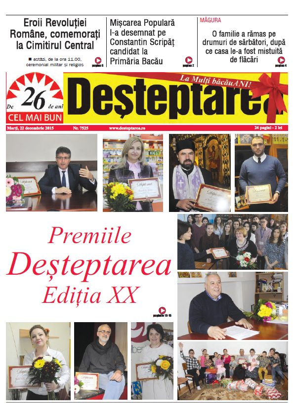 Pagina 1 Deșteptarea 21 decembrie 2015 Acțiune FacebookTwitterWhatsAppTelegramVK Acțiune FacebookTwitterWhatsAppTelegramVK Informare privind cele mai bune practici de utilizare a produselor biocide Decembrie 2025 Ziua Internațională a Voluntariatului celebrată la Cercul Militar Bacău Fotbal/ Liga 2: FC Bacău a făcut instrucție cu Steaua! Autostrada A7: Progrese majore pe Lotul 1 Focșani – Bacău. Imagini comparative arată ritmul alert al constructorului român UMB Polițiștii băcăuani desfășoară acțiuni de prevenire a violenței domestice la centre comerciale Gala Voluntarului Băcăuan 2025 – 200 de voluntari celebrați la ediția a XVII-a, organizată în contextul Zilei Internaționale a Voluntariatului Scheletul din dulapul Uniunii Europene Tânăr de 21 de ani, reținut după ce a condus fără permis și a folosit plăcuțe de înmatriculare false Hramul Sfintei Varvara și sinaxa preoților din Protopopiatul Onești, celebrate la 240 de metri adâncime în Salina Târgu Ocna Șezătoarea de la Măgura, o punte între generații și tradiții Percheziții și 12 autovehicule puse sub sechestru într-un dosar de evaziune fiscală de 150.000 de lei Jandarmii băcăuani au oferit daruri de Moș Nicolae unor copii din Stănișesti