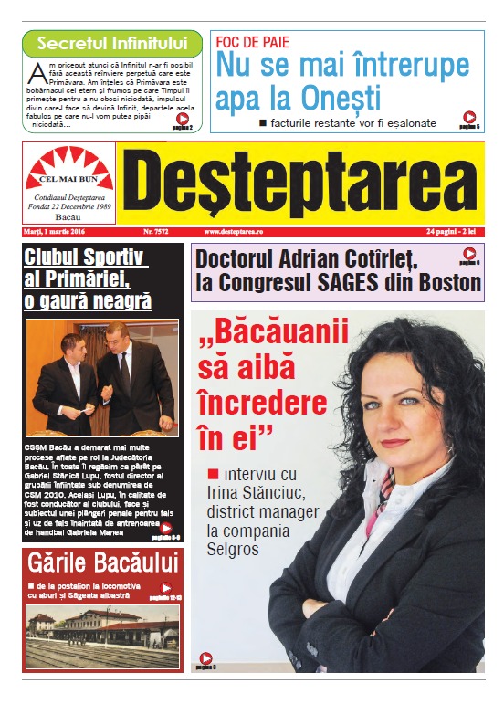 Pagina 1 Deșteptarea 29 februarie 2016 Acțiune FacebookTwitterWhatsAppTelegramVK Acțiune FacebookTwitterWhatsAppTelegramVK Peste 30 de intervenții gestionate de pompierii băcăuani în acest weekend Rezultatele finale ale Concursului Interdisciplinar „Vrănceanu – Procopiu” Bacău, ediția a XXIV-a, 2025 Fotbal: Ne-a părăsit Ioan Sdrobiș! Insula Misterioasă la balul Bobocilor de la Liceul Teoretic „Henri Coandă” Bacău Ziua Internațională a Voluntariatului celebrată prin concurs de mediu la Palatul Copiilor Bacău U17 FC Viitorul Onești, calificare dramatică în optimile Cupei României Obținerea permisului de conducere, mai simplă: cazierul judiciar este verificat direct la ghișeu Avertisment dur de la Garda de Mediu Bacău: un operator economic din Ardeoani, sancționat drastic pentru poluare Jandarmii băcăuani i-au adus căldură lui Nea Vasile, 74 de ani Fotbal/ Liga 3: Viitorul Onești câștigă, FC Bacău 2 încheie la egalitate un meci dramatic, iar Aerostar pierde acasă Clubul Sportiv Bronx, rezultate remarcabile la competiția din Houlegate, Franța Conferința „Excelență, inovație și performanță în medicină” – un eveniment de referință pentru comunitatea medicală băcăuană