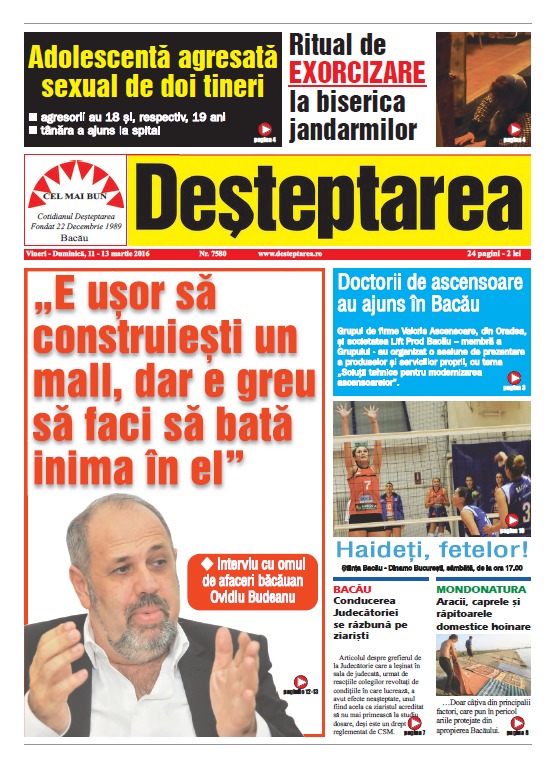 Pagina 1 Deșteptarea 10 martie 2016 Acțiune FacebookTwitterWhatsAppTelegramVK Acțiune FacebookTwitterWhatsAppTelegramVK Doi tineri reținuți după ce au încercat să fure telefoane dintr-un easybox, în Bacău Aurora Multimarket dă startul sezonului de iarnă cu reduceri de până la 90%! Fotbal/ Liga 2: FC Bacău o spulberă cu 5-1 pe Ceahlăul în deplasare și încheie anul în forță! A7 Moldova: Lucrări avansate la trecerea Berești-Sascut, aproape de finalizare „Retorta de argint” și alte lumi dispărute: amintiri despre festivalurile muncitorești Bacăul accelerează în topul salarial al Moldovei: industria trage județul înainte Box: ACS Dan Gym Box, clubul de bronz cu oameni de aur Guvernul limitează cantitățile de alcool și tutun pentru uz personal: maximum 10 litri de băuturi spirtoase Scos din trafic de polițiștii rutieri și introdus în arest Exercițiu de evacuare și prim ajutor la Spitalul Județean de Urgență Bacău, simulând un cutremur în zona Vrancea Spitalul „Prof. Dr. Eduard Apetrei” Buhuși deschide dialogul cu pacienții, într-o întâlnire programată pe 23 decembrie Două dintre cele mai valoroase companii din România sunt din Bacău, conform Ziarului Financiar