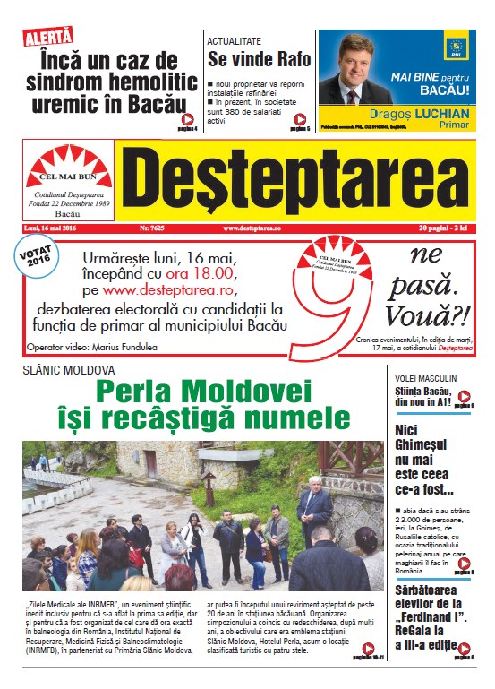 Pagina 1 Deșteptarea 15 mai 2016 Acțiune FacebookTwitterWhatsAppTelegramVK Acțiune FacebookTwitterWhatsAppTelegramVK Rezultatele finale ale Concursului Interdisciplinar „Vrănceanu – Procopiu” Bacău, ediția a XXIV-a, 2025 Fotbal: Ne-a părăsit Ioan Sdrobiș! Insula Misterioasă la balul Bobocilor de la Liceul Teoretic „Henri Coandă” Bacău Ziua Internațională a Voluntariatului celebrată prin concurs de mediu la Palatul Copiilor Bacău U17 FC Viitorul Onești, calificare dramatică în optimile Cupei României Obținerea permisului de conducere, mai simplă: cazierul judiciar este verificat direct la ghișeu Avertisment dur de la Garda de Mediu Bacău: un operator economic din Ardeoani, sancționat drastic pentru poluare Jandarmii băcăuani i-au adus căldură lui Nea Vasile, 74 de ani Fotbal/ Liga 3: Viitorul Onești câștigă, FC Bacău 2 încheie la egalitate un meci dramatic, iar Aerostar pierde acasă Clubul Sportiv Bronx, rezultate remarcabile la competiția din Houlegate, Franța Conferința „Excelență, inovație și performanță în medicină” – un eveniment de referință pentru comunitatea medicală băcăuană Sub semnul recunoștinței și al binelui comun la hramul bisericii „Sfântul Nicolae” din Bacău