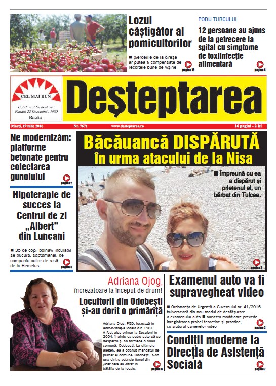 Pagina 1 Deșteptarea 18 iulie 2016 Acțiune FacebookTwitterWhatsAppTelegramVK Acțiune FacebookTwitterWhatsAppTelegramVK Polițiștii din Moinești, mesagerii lui Moș Crăciun Șase tineri jandarmi își încep cariera la Gruparea de Jandarmi Mobilă Bacău La datorie de Sărbători. Recomandările autorităților pentru această perioadă Claudiu Târziu avertizează la Strasbourg: Europa, vulnerabilă din punct de vedere sanitar din cauza dependenței de piețele externe Judo/ Cupa „Moș Crăciun”: „CSMeii” băcăuani, medaliați sub ochii Moșului Măsuri de ordine la manifestările tradiționale de Anul Nou din localitatea Oituz, județul Bacău Doi bărbați depistați de jandarmi în timp ce introduceau în apă plase monofilament Festivalul de datini și obiceiuri strămoșești „Jianul de la Dărmănești”, pe 25 decembrie Accident rutier pe porțiunea abia inaugurată a Autostrăzii A7 Accident rutier în Răcăciuni: o tânără a fost rănită și transportată la spital Gimnastică: Băcăuanca Alexia Blănaru, a doua cea mai bună gimnastă a României în 2025! S-a deschis circulația pe A7 Focșani – Adjud. România depășește pragul de 1.400 km de autostradă