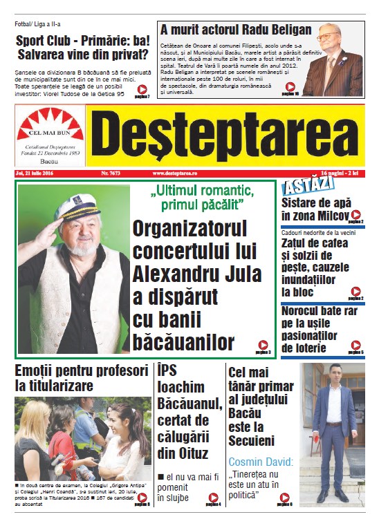 Pagina 1 Deșteptarea 20 iulie 2016 Acțiune FacebookTwitterWhatsAppTelegramVK Acțiune FacebookTwitterWhatsAppTelegramVK La datorie de Sărbători. Recomandările autorităților pentru această perioadă Claudiu Târziu avertizează la Strasbourg: Europa, vulnerabilă din punct de vedere sanitar din cauza dependenței de piețele externe Judo/ Cupa „Moș Crăciun”: „CSMeii” băcăuani, medaliați sub ochii Moșului Măsuri de ordine la manifestările tradiționale de Anul Nou din localitatea Oituz, județul Bacău Doi bărbați depistați de jandarmi în timp ce introduceau în apă plase monofilament Festivalul de datini și obiceiuri strămoșești „Jianul de la Dărmănești”, pe 25 decembrie Accident rutier pe porțiunea abia inaugurată a Autostrăzii A7 Accident rutier în Răcăciuni: o tânără a fost rănită și transportată la spital Gimnastică: Băcăuanca Alexia Blănaru, a doua cea mai bună gimnastă a României în 2025! S-a deschis circulația pe A7 Focșani – Adjud. România depășește pragul de 1.400 km de autostradă Blackjack 3:2 vs. Blackjack 6:5 – cât de mult contează diferența pe termen lung? Investiție majoră în sănătate: Spitalul Județean de Urgență Bacău va avea Laborator de Angiografie și Compartiment de Stroke