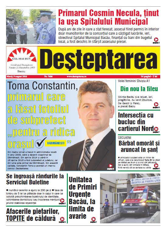 Pagina 1 Deșteptarea 8 august 2016 Acțiune FacebookTwitterWhatsAppTelegramVK Acțiune FacebookTwitterWhatsAppTelegramVK Daniel David și-a dat demisia din funcția de ministru al Educației. Nemulțumiri legate de buget și de viitoarele tăieri anunțate de Guvern Polițiștii de la Serviciul pentru Acțiuni Speciale Bacău au poposit în casele celor care au nevoie de ajutor Gimnastică: Și lui Moș Crăciun îi place gimnastica Containerele de locuit – tehnologia care redefineşte conceptul de „acasă” Piticii de la Grădinița „Dumbrava Minunată” au adus bucurie bunicilor de la Căminul „Brațe Părintești” Jandarmii băcăuani și-au deschis porțile pentru elevii din Onești Când marii fotbaliști ai Bacăului apărau și atacau porțile Europei 36 de ani de la Revoluția Română din 1989. Depunere de coroane de flori la Cimitirul Central Școala Gimnazială „Constantin Platon”, câștigătoarea Târgului de Crăciun al Școlilor din Bacău Programul de lucru la RAJA S.A. în perioada sărbătorilor de iarnă! Revoluționar în Bacău. O mărturie din decembrie 1989 Tombola Dragoliv din decembrie, un nou eveniment de succes: peste 500 de participanți, două BMW-uri oferite și parteneriat cu tbi bank