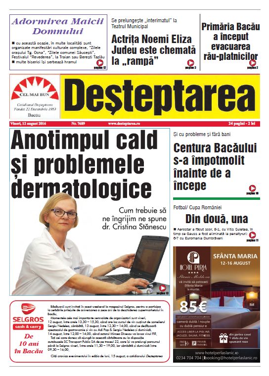 Pagina 1 Deșteptarea 11 august 2016 Acțiune FacebookTwitterWhatsAppTelegramVK Acțiune FacebookTwitterWhatsAppTelegramVK Daniel David și-a dat demisia din funcția de ministru al Educației. Nemulțumiri legate de buget și de viitoarele tăieri anunțate de Guvern Polițiștii de la Serviciul pentru Acțiuni Speciale Bacău au poposit în casele celor care au nevoie de ajutor Gimnastică: Și lui Moș Crăciun îi place gimnastica Containerele de locuit – tehnologia care redefineşte conceptul de „acasă” Piticii de la Grădinița „Dumbrava Minunată” au adus bucurie bunicilor de la Căminul „Brațe Părintești” Jandarmii băcăuani și-au deschis porțile pentru elevii din Onești Când marii fotbaliști ai Bacăului apărau și atacau porțile Europei 36 de ani de la Revoluția Română din 1989. Depunere de coroane de flori la Cimitirul Central Școala Gimnazială „Constantin Platon”, câștigătoarea Târgului de Crăciun al Școlilor din Bacău Programul de lucru la RAJA S.A. în perioada sărbătorilor de iarnă! Revoluționar în Bacău. O mărturie din decembrie 1989 Tombola Dragoliv din decembrie, un nou eveniment de succes: peste 500 de participanți, două BMW-uri oferite și parteneriat cu tbi bank