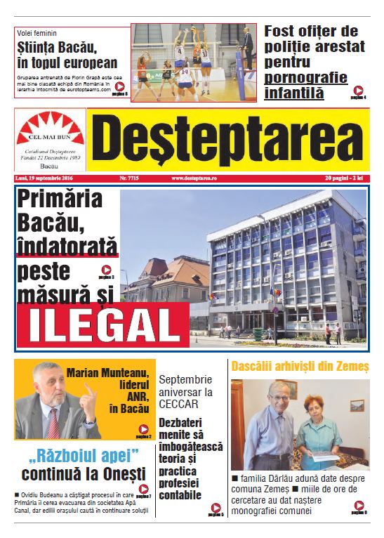 Pagina 1 Deșteptarea 18 septembrie 2016 Acțiune FacebookTwitterWhatsAppTelegramVK Acțiune FacebookTwitterWhatsAppTelegramVK Claudiu Târziu critică dur bilanțul Comisiei von der Leyen la un an de mandat Zile de sărbătoare dedicate elevilor Școlii Gimnaziale „Miron Costin” Bacău Cum este asigurată asistența medicală de urgență în județul Bacău, cu ocazia Sărbătorilor de Iarnă Psihologia culorilor în sloturile online: ce ne transmit aspectele vizuale ale jocurilor Containere FDC, 10 ani de dezvoltare industrială băcăuană Intervenție pe Calea Bacăului din orașul Onești! TOP 10 SCM Bacău 2025 Legea nr. 239/2025 introduce reguli noi privind capitalul social, dividendele și împrumuturile către persoane afiliate Santa Cross 2025 Concertul Corului „Flores Amicitiae” – o seară a bucuriei și a spiritului autentic al Crăciunului Împreună de Crăciun Creștere a cazurilor de afecțiuni respiratorii și gripă în județul Bacău. DSP face apel la populație pentru prevenție