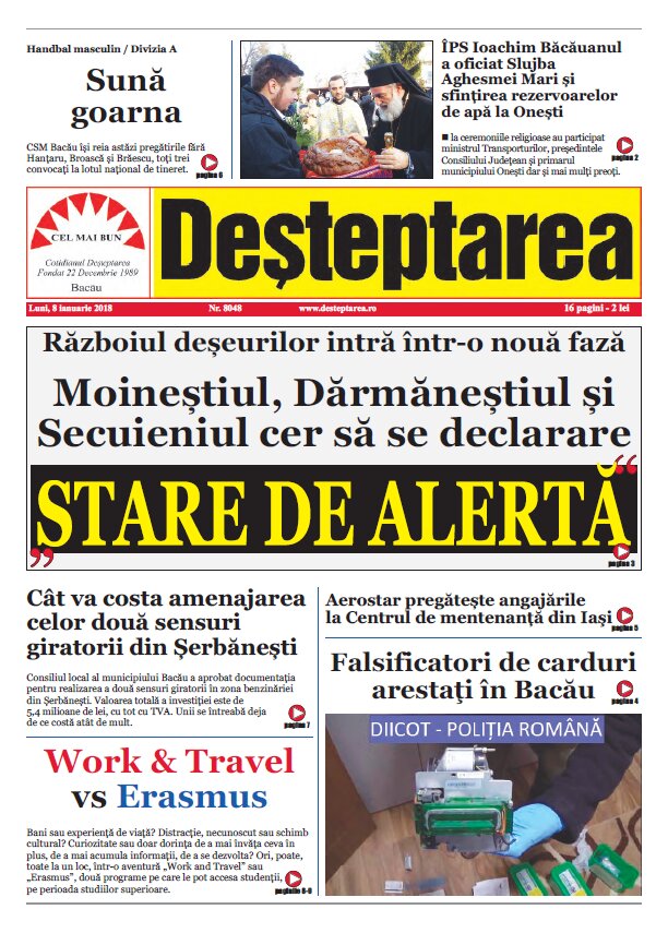 Pagina 1 Deșteptarea 8 ianuarie 2018 Acțiune FacebookTwitterWhatsAppTelegramVK Acțiune FacebookTwitterWhatsAppTelegramVK Gala Educației – 1.000 de laureați din Educația Băcăuană, recompensați pentru excelență Captură importantă de materiale pirotehnice în comuna Sărata Pâna la finele anului, Autostrada A7 se va deschide traficului până la Adjud Despre provocările actuale şi aboradrea lor prin cercetare şi inovare, în cadrul proiectului Connect-UBc al Universităţii „Vasile Alecsandri” din Bacău Piața imobiliară, în declin: scădere semnificativă a vânzărilor în noiembrie Cum se formează loialitatea jucătorilor în cazinouri Incendiu la o locuință din Gura Văii – fără victime Amenzile pentru noile obligații RCA au intrat în vigoare. Bicicletele și trotinetele electrice, vizate oficial Fotbal / Liga 3 a intrat în vacanță Iernile de altădată ale Bacăului Tenis: ACS Moldosport, final de an în prim-plan Doi tineri reținuți după ce au încercat să fure telefoane dintr-un easybox, în Bacău