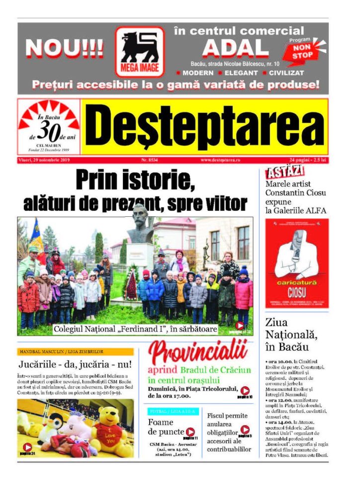 Pagina 1 Deșteptarea29 noiembrie 2019AcțiuneFacebookTwitterWhatsAppTelegramVK AcțiuneFacebookTwitterWhatsAppTelegramVK Exercițiu de evacuare și prim ajutor la Spitalul Județean de Urgență Bacău, simulând un cutremur în zona VranceaSpitalul „Prof. Dr. Eduard Apetrei” Buhuși deschide dialogul cu pacienții, într-o întâlnire programată pe 23 decembrieDouă dintre cele mai valoroase companii din România sunt din Bacău, conform Ziarului FinanciarBacău: Universitatea „Vasile Alecsandri” a organizat serbarea de CrăciunDublă lansare de carte la Centrul de Cultură „George Apostu”, cu Carmen Mihalache și Dan PerșaCreștere a infecțiilor respiratorii în județul Bacău. Opt cazuri noi de gripă în ultima săptămânăPesta porcină africană confirmată la IteștiPompierii au verificat adăposturile antiaeriene. Doar 6% din populația județului încape în eleBurnout-ul de sărbători. De ce nu ne simțim mai bine după vacanță, ci mai obosiți„Genealogii imaginare”. Expoziție de sculptură Marian PetreIntervenție chirurgicală minim invazivă de excepție, realizată la Secția de Chirurgie și Ortopedie Pediatrică a SJU BacăuFotbal/ Liga 3: Etapă de final de an