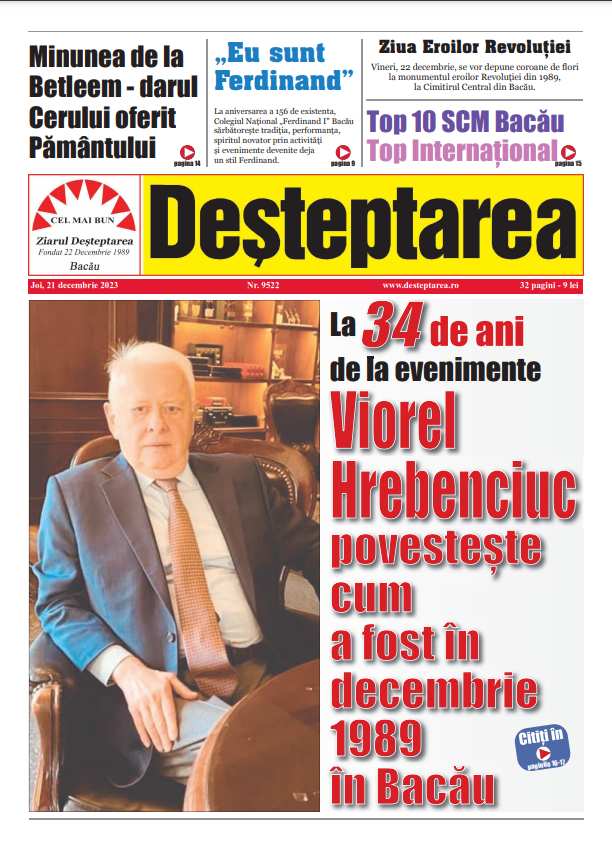 Pagina 1 Deșteptarea21 decembrie 2023AcțiuneFacebookTwitterWhatsAppTelegramVK AcțiuneFacebookTwitterWhatsAppTelegramVK Peste 30 de intervenții gestionate de pompierii băcăuani în acest weekendRezultatele finale ale Concursului Interdisciplinar „Vrănceanu – Procopiu” Bacău, ediția a XXIV-a, 2025Fotbal: Ne-a părăsit Ioan Sdrobiș!Insula Misterioasă la balul Bobocilor de la Liceul Teoretic „Henri Coandă” BacăuZiua Internațională a Voluntariatului celebrată prin concurs de mediu la Palatul Copiilor BacăuU17 FC Viitorul Onești, calificare dramatică în optimile Cupei RomânieiObținerea permisului de conducere, mai simplă: cazierul judiciar este verificat direct la ghișeuAvertisment dur de la Garda de Mediu Bacău: un operator economic din Ardeoani, sancționat drastic pentru poluareJandarmii băcăuani i-au adus căldură lui Nea Vasile, 74 de aniFotbal/ Liga 3: Viitorul Onești câștigă, FC Bacău 2 încheie la egalitate un meci dramatic, iar Aerostar pierde acasăClubul Sportiv Bronx, rezultate remarcabile la competiția din Houlegate, FranțaConferința „Excelență, inovație și performanță în medicină” – un eveniment de referință pentru comunitatea medicală băcăuană