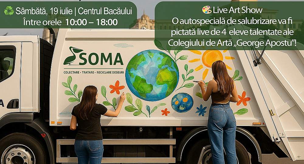 SOMA Salubrizare și ADIS Bacău, în parteneriat cu Primăria Municipiului Bacău și Colegiul Național de Artă „George Apostu”, organizează sâmbătă, 19 iulie, un eveniment inedit de educație ecologică prin artă: „Paint My Truck”.