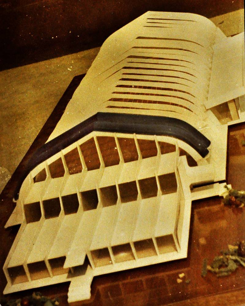 Unul pentru partea medicală și de asistență, care trebuia să fie asigurată sportivilor, unul era restaurant – cu acoperișul în formă de piramide și fântâni arteziene, iar al treilea, ca pavilion administrativ. Unde este acum ISC-ul (clădirea în formă de creion a Inspectoratului în Construcții), trebuia să fie Patinoarul, proiectat în formă de scoică, care se deschidea spre zona sportivă. Sala de Lupte era proiectată în formă de fluture. Ca o antiteză între forța luptelor, a boxului și zborul fluturelui, performanța, sportivitatea.