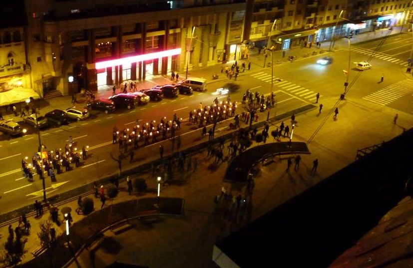 Zeci de faclii purtate de militari au luminat sambata seara centrul municipiului Bacau.