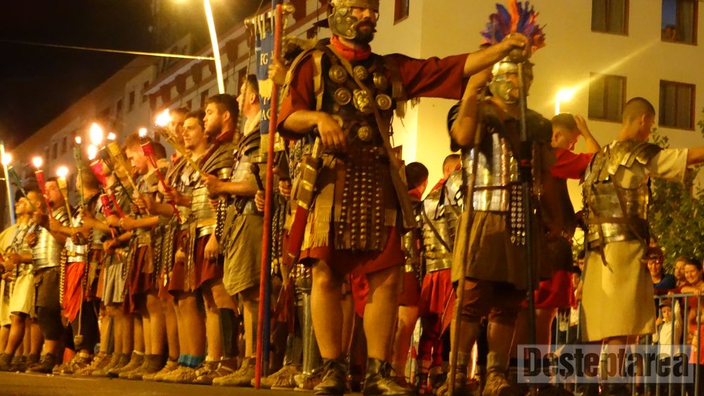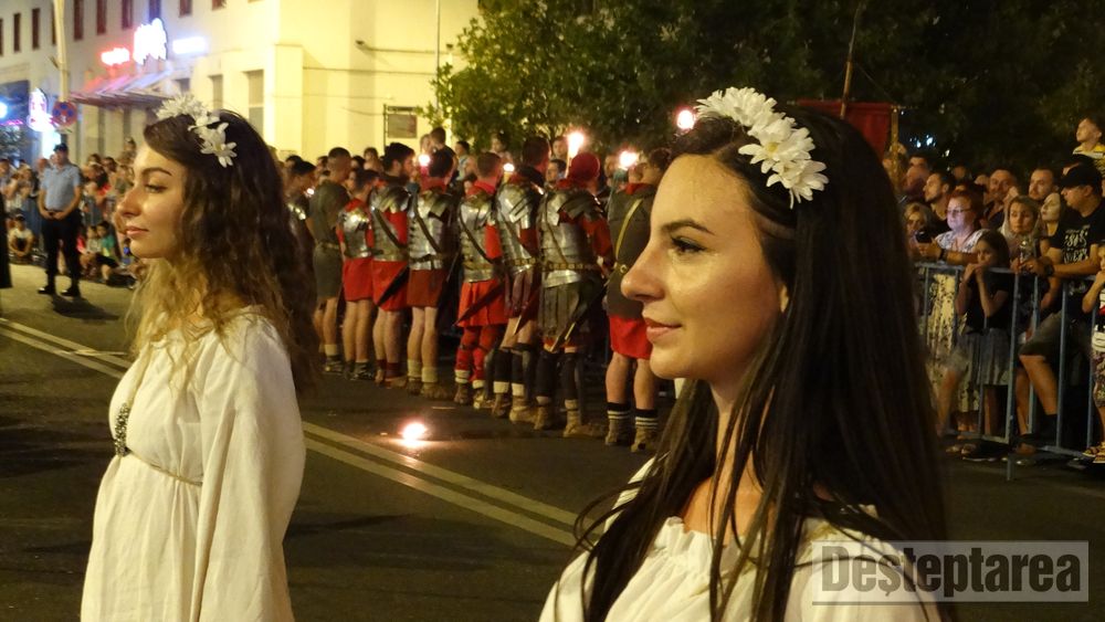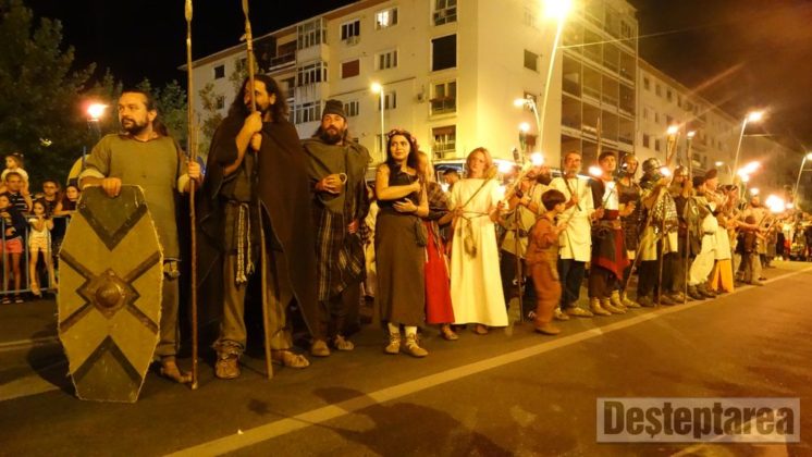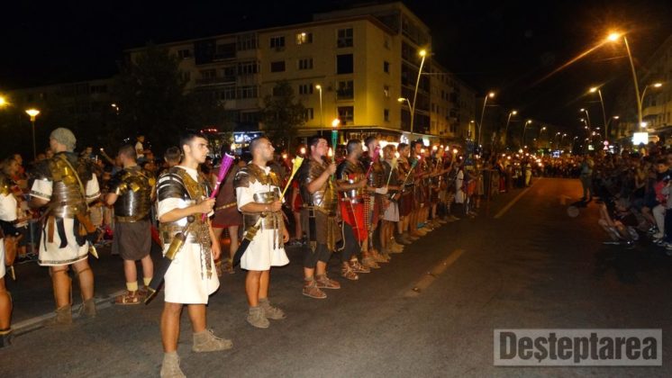 Până atunci, trupele de daci şi de romani, aproximativ 200 de combatanţi, cu tot echipamentul şi însemnele de identificare, din Bulgaria, Cluj, Argeş, Alba Iulia şi Baia Mare, denumite sugestiv Terra Dacica Aeterna, Garda Apulum, Historia Renascita, Omnis Barbaria, Legia Italica, au ţinut să salute gazdele şi pe băcăuani, printr-o paradă cu torţe, pe traseul Catedrala „Înălţarea Domnului” – Piaţa Tricolorului.