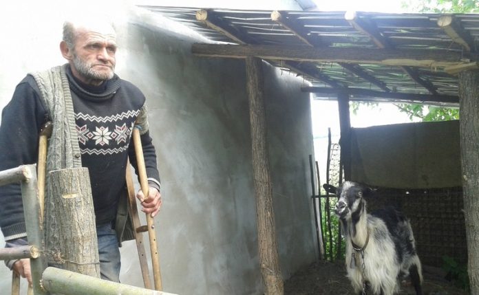 Acum are o camera a lui, construita de rudele sale pe pamântul fostei locuinte. Nici aici conditiile nu sunt cele mai bune, dar isi duce saracia cu demnitate. „Sunt bolnav din copilarie. Am reumatism, la un picior am proteza totala, dar la celalalt n-am mai avut sa ma descurc si am ramas asa. Ca sa fac inca o operatie la Iasi trebuie foarte multi bani”, spune Vasile. Incadrat intr-un grad de handicap, omul primeste lunar putin peste 200 de lei. Banii nu-i sunt de ajuns si ca sa-si asigure hrana si sa aiba o ocupatie si-a cumparat o capra, pe care o duce zi de zi la pascut. L-am gasit necajit pentru ca animalul s-a imbolnavit si nu mai da asa de mult lapte. A chemat veterinarul sa o consulte si spera sa nu fie nimic grav.