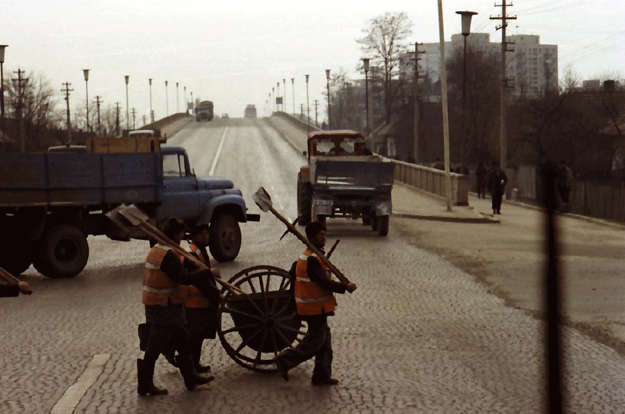 Intr-o dimineata de martie, mai precis pe 29, el a imortalizat un grup de angajati ai serviciului de salubritate in zona pasarelei Letea (Podul de la Narcisa).