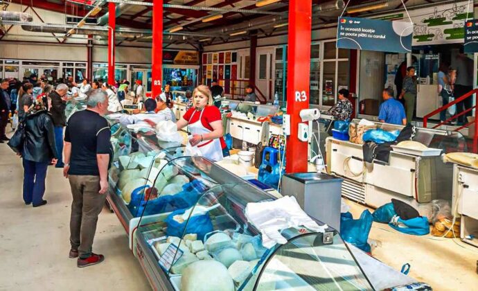 Nu puteam să ratăm hala de brânzeturi, mai ales că în această perioadă cașul e vedetă și ar trebui să fie nelipsit de pe masa de Paște. Prețuri: caș oaie – 40 de lei kilogramul, urdă 40 de lei, brânză de vaci și caș de vaci 35 de lei. Iar clienții dau târcoale tarabelor, degustă de colo și de colo.
