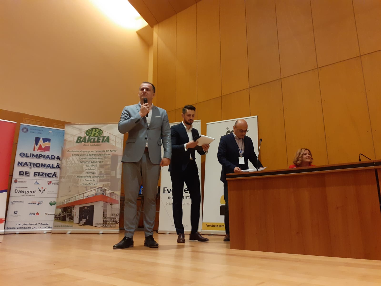 La festivitatea de închidere și premiere a Olimpiadei Naționale de Fizică au participat prof. Ana-Maria Egarmin, inspector școlar general la ISJ Bacău, președintele comisiei naționale a Olimpiadei Naționale de Fizică, conf. dr. Sebastian Popescu – Facultatea de Fizică a Universității Al. I. Cuza din Iași, Valentin Ivancea – președintele CJ Bacău, Lucian Stanciu Viziteu – primarul municipiului Bacău și Claudiu Doroș – președintele C.A. al EVERGENT Investment.