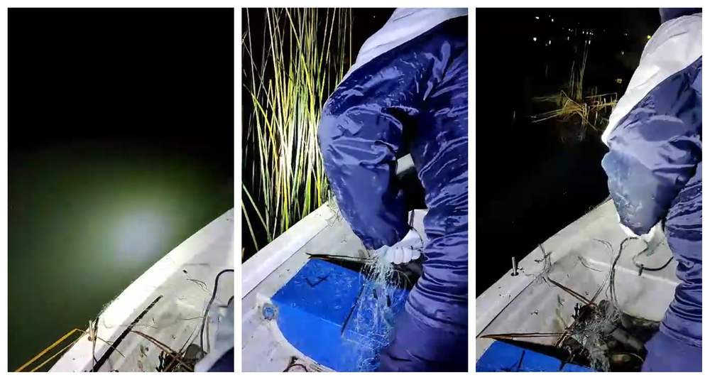 Centrul Regional de Ecologie Bacău a desfășurat o acțiune de patrulare de noapte care s-a încheiat în jurul orei 03.00, dezvăluind o descoperire îngrijorătoare – o plasă monofilament de aproximativ 50 de metri întinsă pe lacul Bacău. Această situație indică extinderea braconajului piscicol, o problemă generalizată pe apele publice.