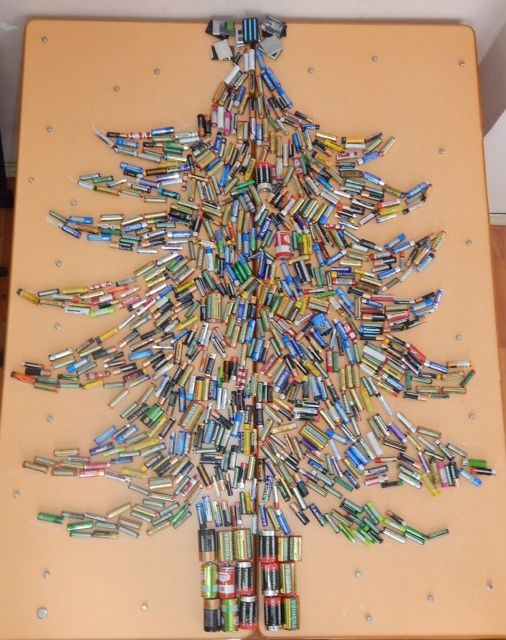 In prima campanie de colectare a D.E.E.E, voluntarii de la „Mihai Dragan” au adunat 120 kg electronice si electrocasnice mici, dar si 16 kg de baterii, din care au realizat un accesoriu D.E.E.E. Craciun, numit „bradutul alcalin”.