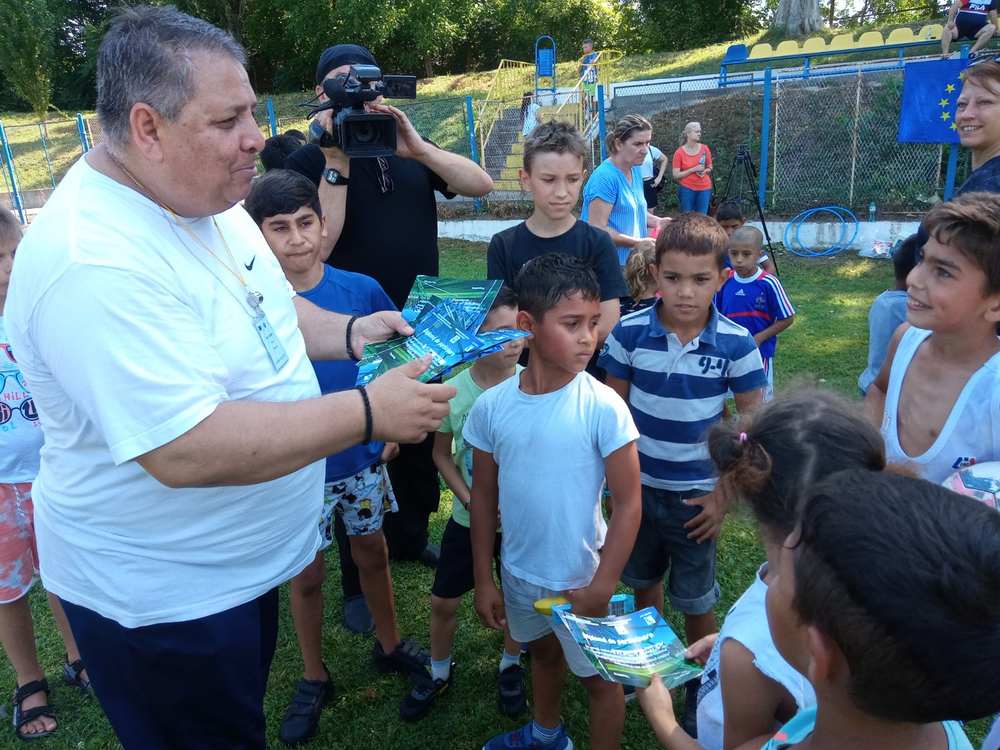 Urmează, evident, fotografiile, ridicarea cupei deasupra capului, cupă care va fi expusă în vitrina centrului, și care le va aminti de o zi, de o altă zi deosebită din viața lor. Asociația, pe lângă diplome, cupe, alte mici și importante cadouri, a dăruit Centrului o mingie, un set de tricouri, oferite de Asociația Județeană de Fotbal, pe care le vor folosi la alte competiții, organizate de Asociația condusă de Doru Tănase, cu alte școli, unde învață copii de etnie romă și nu numai.