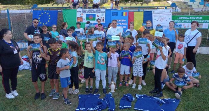 Urmează, evident, fotografiile, ridicarea cupei deasupra capului, cupă care va fi expusă în vitrina centrului, și care le va aminti de o zi, de o altă zi deosebită din viața lor. Asociația, pe lângă diplome, cupe, alte mici și importante cadouri, a dăruit Centrului o mingie, un set de tricouri, oferite de Asociația Județeană de Fotbal, pe care le vor folosi la alte competiții, organizate de Asociația condusă de Doru Tănase, cu alte școli, unde învață copii de etnie romă și nu numai.