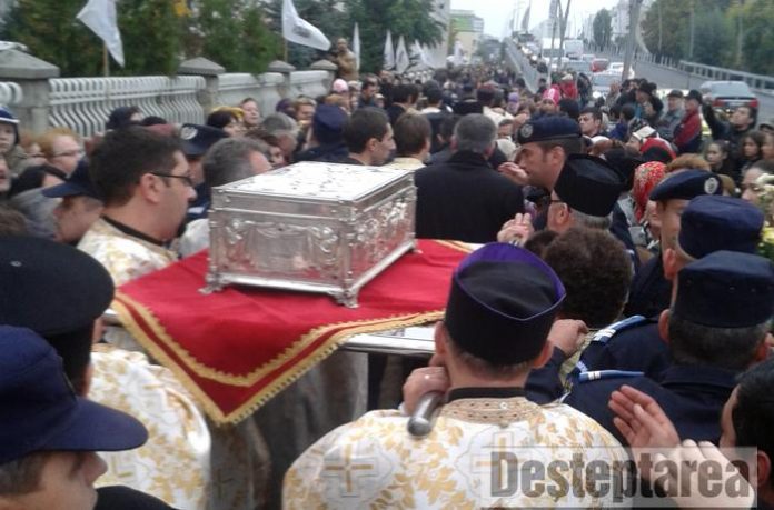 Peste 1.000 de credinciosi bacauani, carora li s-au alaturat si reprezentantii administratiei locale si judetene, au intâmpinat vineri, 11 octombrie, incepând cu ora 17.00, la biserica „Sf. Dimitru” din zona Narcisa, racla cu moastele Sfintilor Imparati Constantin si Elena.