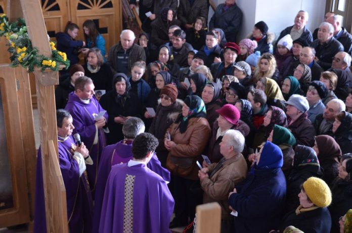 Momentul de rugăciune a început cu recitarea rugăciunilor necesare pentru a primi indulgenţa, după care fiecare credincios în frunte cu pr. decan, Isidor Dâscă, si pr. vicedecan Gheorghe Cojocaru, a trecut prin Poarta Milostivirii.