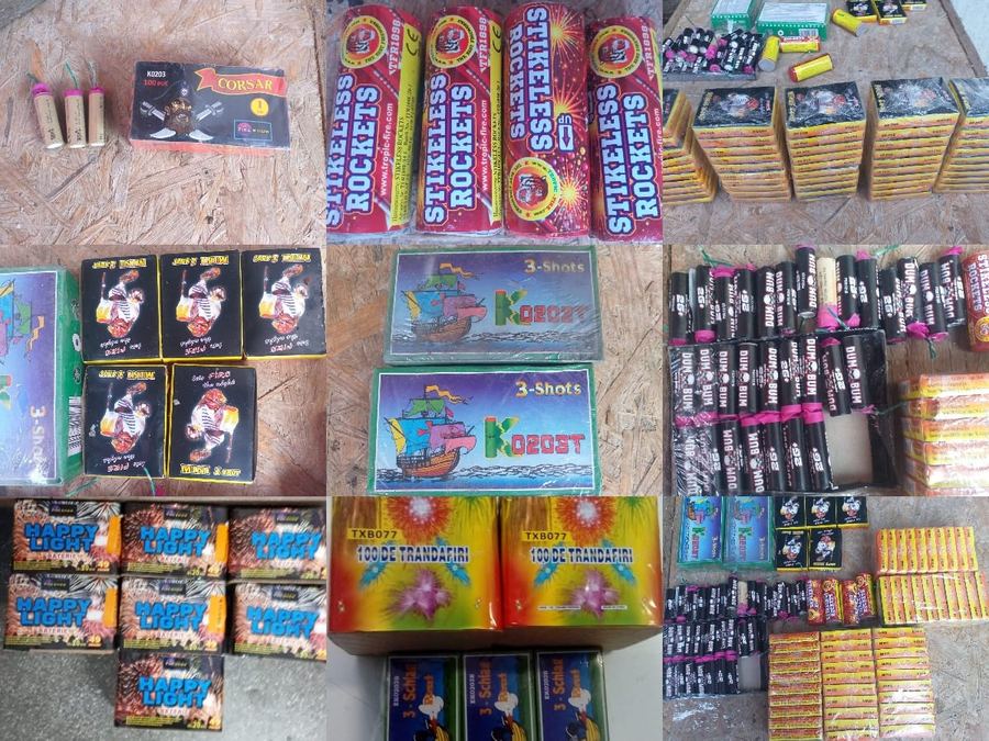 În urma perchezițiilor, polițiștii au descoperit și ridicat aproximativ 110 kilograme de articole pirotehnice din categoriile F2, F3, F4 și P1, toate deținute ilegal. Materialele au fost confiscate în vederea continuării cercetărilor, iar ancheta este în desfășurare.